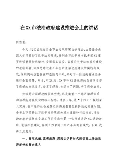 / 【七哥公文】2025年:在XX市法治政府建设推进会上的讲话+更多免费公文+VX:QiGeGongWen2024