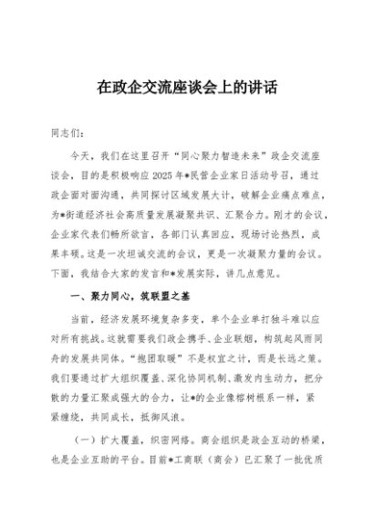/ 【七哥公文】2025年:在政企交流座谈会上的讲话+更多免费公文+VX:QiGeGongWen2024