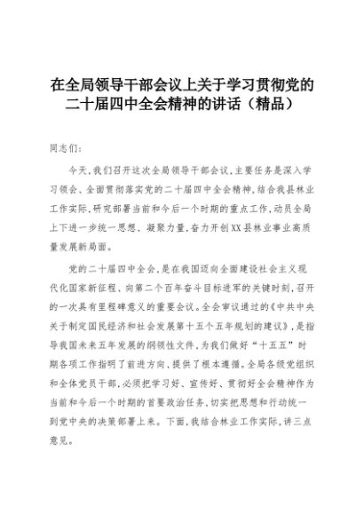 【七哥公文】2025年:在全局领导干部会议上关于学习贯彻党的二十届四中全会精神的讲话(精品)+更多免费公文+VX:QiGeGongWen2024
