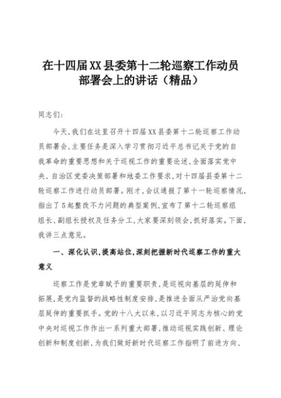 【七哥公文】2025年:在十四届XX县委第十二轮巡察工作动员部署会上的讲话(精品)+更多免费公文+VX:QiGeGongWen2024