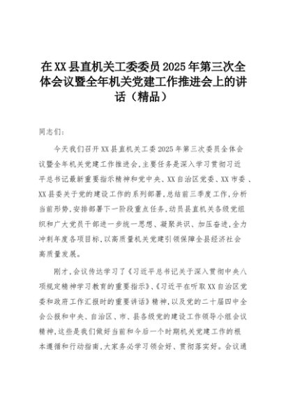 【七哥公文】2025年:在XX县直机关工委委员2025年第三次全体会议暨全年机关党建工作推进会上的讲话(精品)+更多免费公文+VX:QiGeGongWen2024