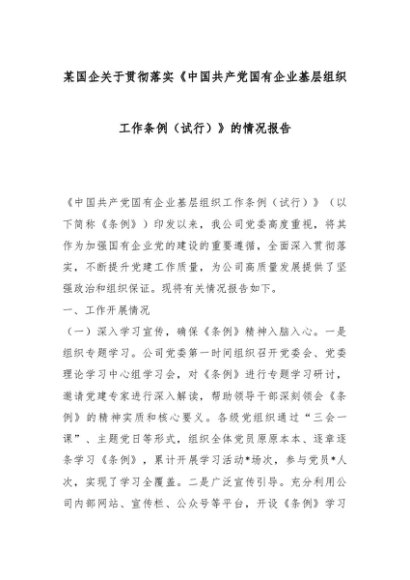 【七哥公文】2025年:某国企关于贯彻落实《中国共产党国有企业基层组织工作条例(试行)》的情况报告_副本+更多免费公文+VX:QiGeGongWen2024