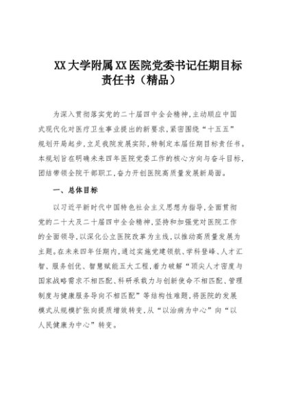 【七哥公文】2025年:XX大学附属XX医院党委书记任期目标责任书(精品)+更多免费公文+VX:QiGeGongWen2024