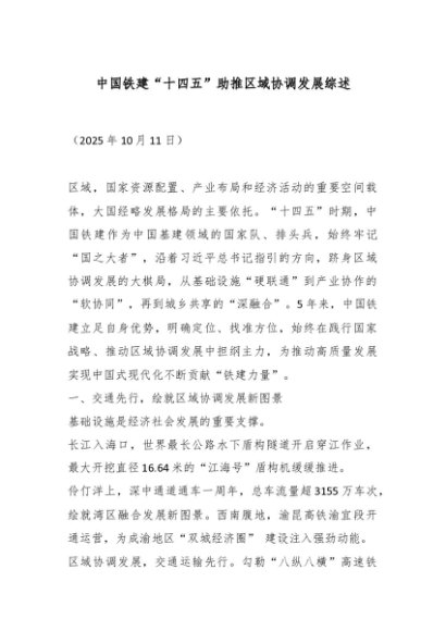 / 【七哥公文】2025年:中国铁建“十四五”助推区域协调发展综述_副本+更多免费公文+VX:QiGeGongWen2024