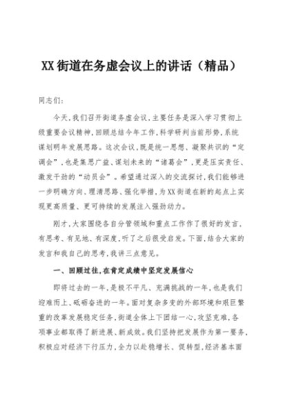 / 【七哥公文】2025年:XX街道在务虚会议上的讲话(精品)+更多免费公文+VX:QiGeGongWen2024