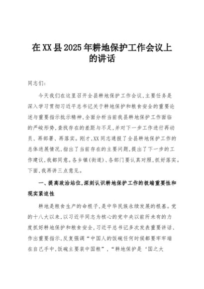 / 【七哥公文】2025年:在XX县2025年耕地保护工作会议上的讲话+更多免费公文+VX:QiGeGongWen2024