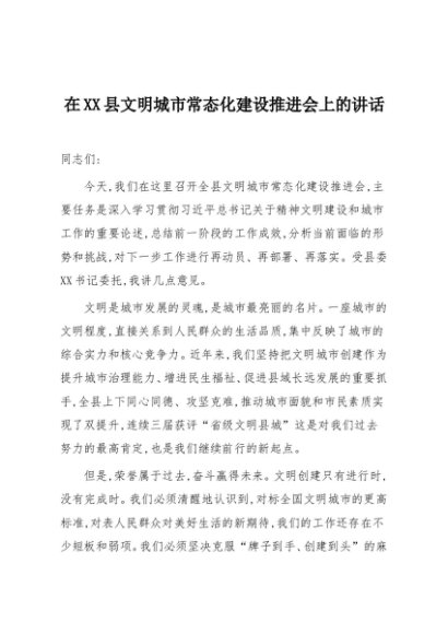 / 【七哥公文】2025年:在XX县文明城市常态化建设推进会上的讲话+更多免费公文+VX:QiGeGongWen2024
