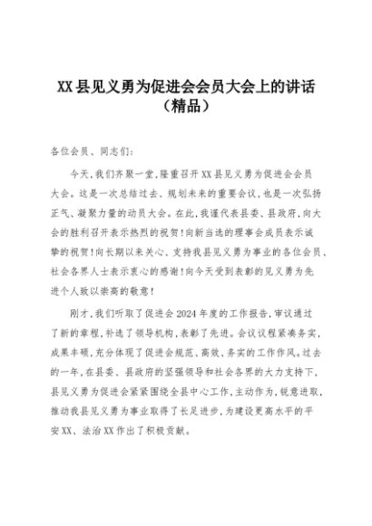 / 【七哥公文】2025年:XX县见义勇为促进会会员大会上的讲话(精品)+更多免费公文+VX:QiGeGongWen2024