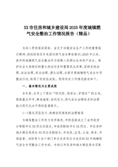 【七哥公文】2025年:XX市住房和城乡建设局2025年度城镇燃气安全整治工作情况报告(精品)+更多免费公文+VX:QiGeGongWen2024
