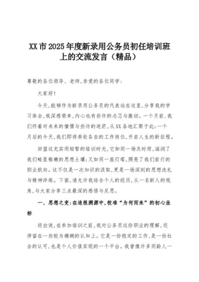 【七哥公文】2025年:XX市2025年度新录用公务员初任培训班上的交流发言(精品)+更多免费公文+VX:QiGeGongWen2024