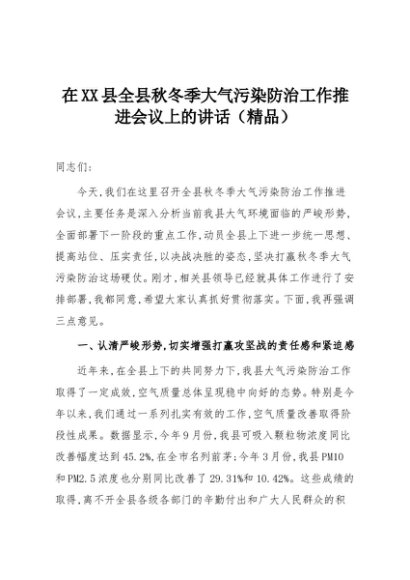 【七哥公文】2025年:在XX县全县秋冬季大气污染防治工作推进会议上的讲话(精品)+更多免费公文+VX:QiGeGongWen2024