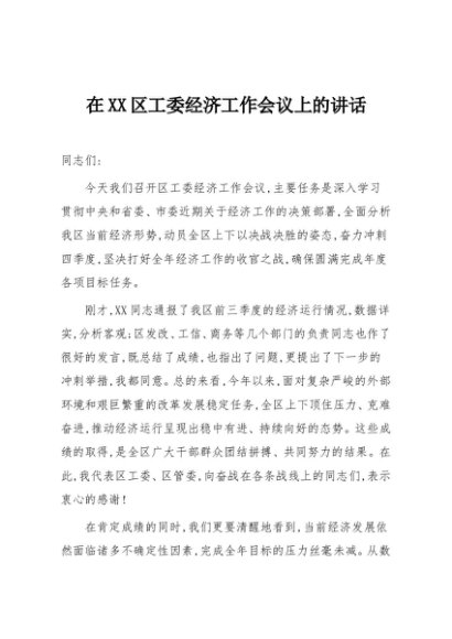 / 【七哥公文】2025年:在XX区工委经济工作会议上的讲话+更多免费公文+VX:QiGeGongWen2024