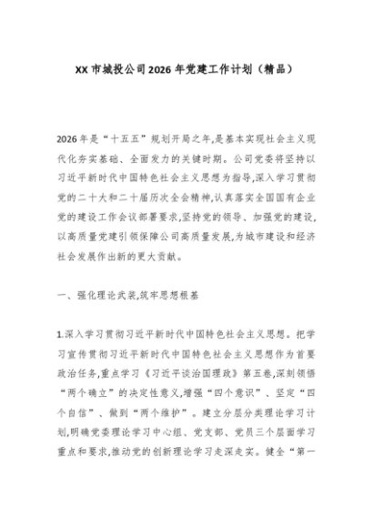 【七哥公文】2025年:XX市城投公司2026年党建工作计划(精品)_副本+更多免费公文+VX:QiGeGongWen2024
