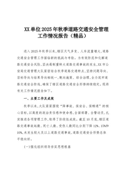 【七哥公文】2025年:XX单位2025年秋季道路交通安全管理工作情况报告(精品)+更多免费公文+VX:QiGeGongWen2024