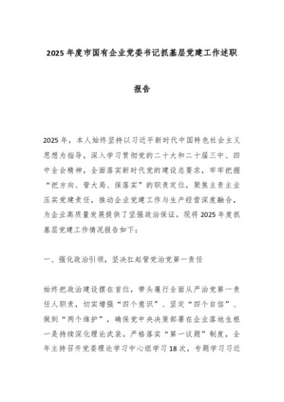 【七哥公文】2025年:2025年度市国有企业党委书记抓基层党建工作述职报告_副本+更多免费公文+VX:QiGeGongWen2024