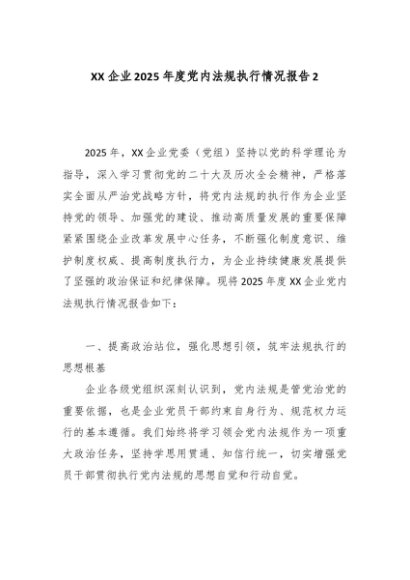 【七哥公文】2025年:XX企业2025年度党内法规执行情况报告2_副本+更多免费公文+VX:QiGeGongWen2024
