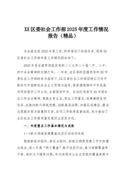 【七哥公文】2025年:XX区委社会工作部2025年度工作情况报告(精品)+更多免费公文+VX:QiGeGongWen2024