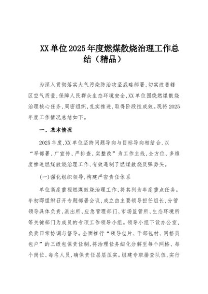 / 【七哥公文】2025年:XX单位2025年度燃煤散烧治理工作总结(精品)+更多免费公文+VX:QiGeGongWen2024