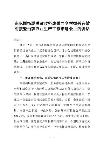 【七哥公文】2025年:在巩固拓展脱贫攻坚成果同乡村振兴有效衔接暨当前农业生产工作推进会上的讲话+更多免费公文+VX:QiGeGongWen2024