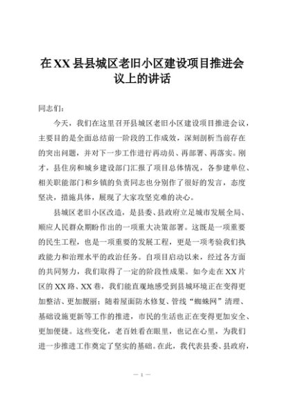 / 【七哥公文】2025年:在XX县县城区老旧小区建设项目推进会议上的讲话+更多免费公文+VX:QiGeGongWen2024
