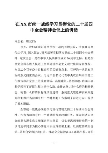 【七哥公文】2025年:在XX市统一战线学习贯彻党的二十届四中全会精神会议上的讲话+更多免费公文+VX:QiGeGongWen2024