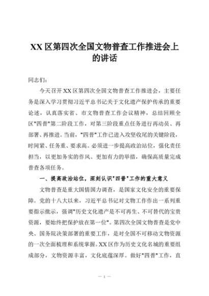 / 【七哥公文】2025年:XX区第四次全国文物普查工作推进会上的讲话+更多免费公文+VX:QiGeGongWen2024