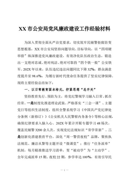 / 【七哥公文】2025年:XX市公安局党风廉政建设工作经验材料+更多免费公文+VX:QiGeGongWen2024