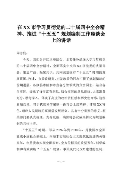【七哥公文】2025年:在XX市学习贯彻党的二十届四中全会精神、推进“十五五”规划编制工作座谈会上的讲话+更多免费公文+VX:QiGeGongWen2024