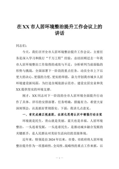 / 【七哥公文】2025年:在XX市人居环境整治提升工作会议上的讲话+更多免费公文+VX:QiGeGongWen2024