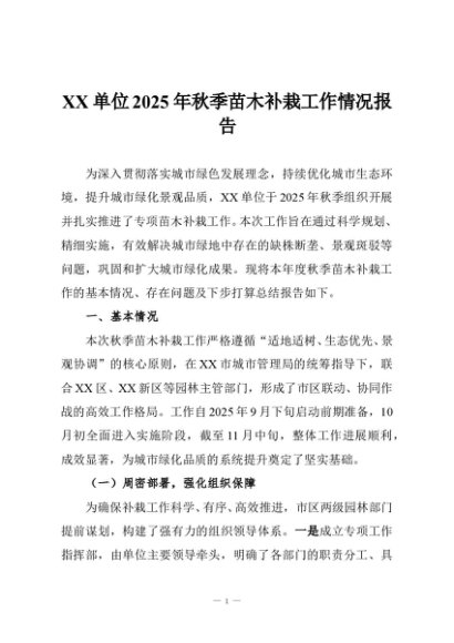 / 【七哥公文】2025年:XX单位2025年秋季苗木补栽工作情况报告+更多免费公文+VX:QiGeGongWen2024