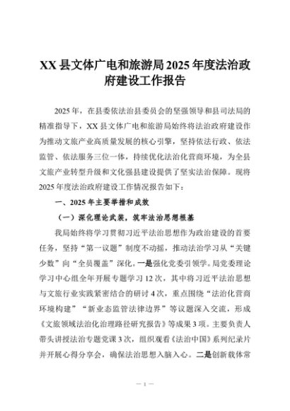 【七哥公文】2025年:XX县文体广电和旅游局2025年度法治政府建设工作报告+更多免费公文+VX:QiGeGongWen2024