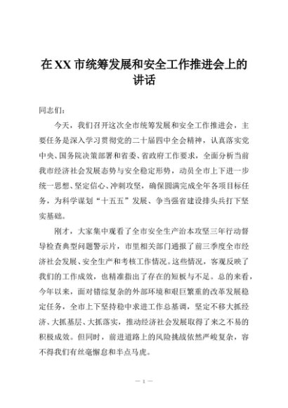 / 【七哥公文】2025年:在XX市统筹发展和安全工作推进会上的讲话+更多免费公文+VX:QiGeGongWen2024