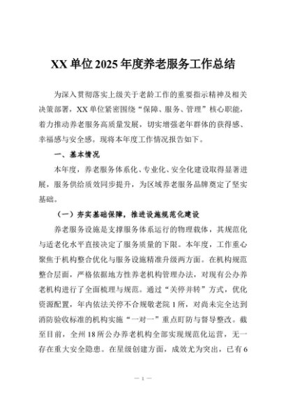 / 【七哥公文】2025年:XX单位2025年度养老服务工作总结+更多免费公文+VX:QiGeGongWen2024
