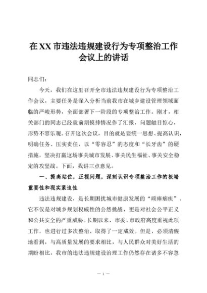 / 【七哥公文】2025年:在XX市违法违规建设行为专项整治工作会议上的讲话+更多免费公文+VX:QiGeGongWen2024
