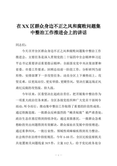 【七哥公文】2025年:在XX区群众身边不正之风和腐败问题集中整治工作推进会上的讲话+更多免费公文+VX:QiGeGongWen2024