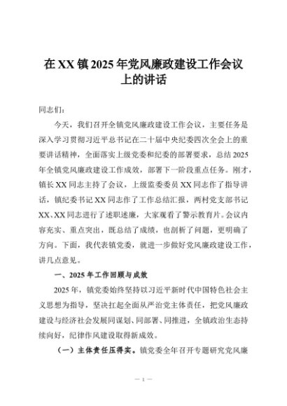 / 【七哥公文】2025年:在XX镇2025年党风廉政建设工作会议上的讲话+更多免费公文+VX:QiGeGongWen2024
