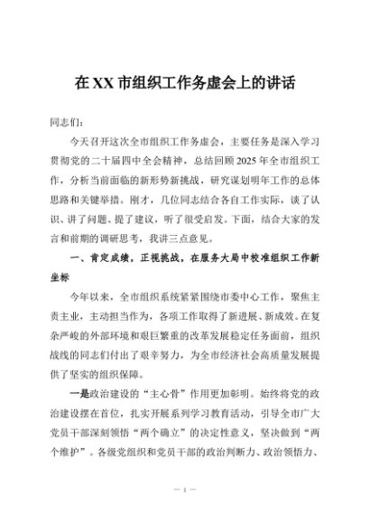 / 【七哥公文】2025年:在XX市组织工作务虚会上的讲话+更多免费公文+VX:QiGeGongWen2024