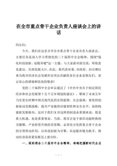 / 【七哥公文】2025年:在全市重点骨干企业负责人座谈会上的讲话+更多免费公文+VX:QiGeGongWen2024