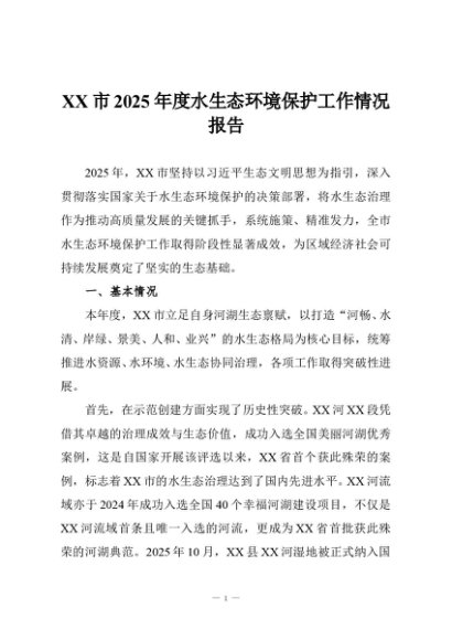 / 【七哥公文】2025年:XX市2025年度水生态环境保护工作情况报告+更多免费公文+VX:QiGeGongWen2024
