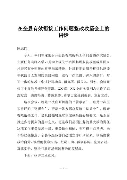/ 【七哥公文】2025年:在全县有效衔接工作问题整改攻坚会上的讲话+更多免费公文+VX:QiGeGongWen2024