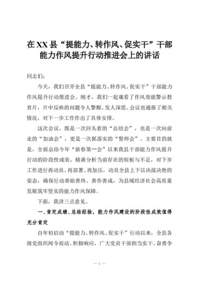 【七哥公文】2025年:在XX县“提能力、转作风、促实干”干部能力作风提升行动推进会上的讲话+更多免费公文+VX:QiGeGongWen2024