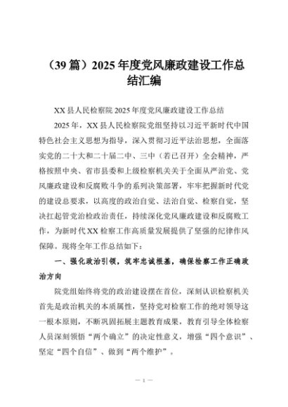 / 【七哥公文】2025年:(39篇)2025年度党风廉政建设工作总结汇编+更多免费公文+VX:QiGeGongWen2024