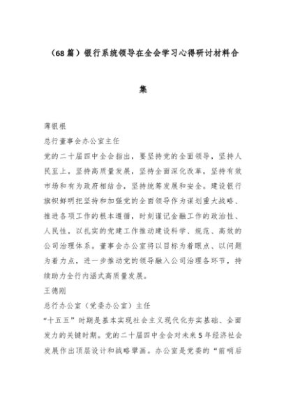 【七哥公文】2025年:(68篇)银行系统领导在全会学习心得研讨材料合集_副本+更多免费公文+VX:QiGeGongWen2024
