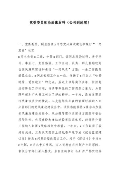 / 【七哥公文】2025年:党委委员政治画像材料(公司副经理)_副本+更多免费公文+VX:QiGeGongWen2024