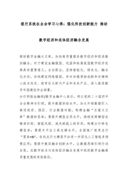 【七哥公文】2025年:银行系统在全会学习心得:强化科技创新能力 推动数字经济和实体经济融合发展_副本+更多免费公文+VX:QiGeGongWen2024