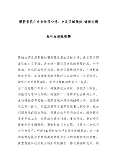 【七哥公文】2025年:银行系统在全会学习心得:立足区域优势 铸就协调互补发展强引擎_副本+更多免费公文+VX:QiGeGongWen2024