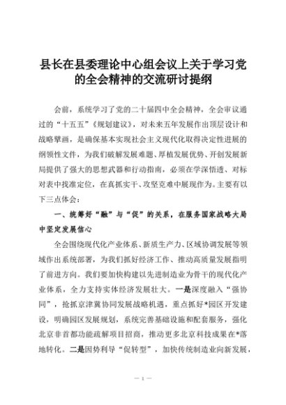 【七哥公文】2025年:县长在县委理论中心组会议上关于学习党的全会精神的交流研讨提纲+更多免费公文+VX:QiGeGongWen2024