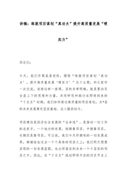 【七哥公文】2025年:讲稿:练就项目谋划“真功夫”提升高质量发展“硬实力”_副本+更多免费公文+VX:QiGeGongWen2024
