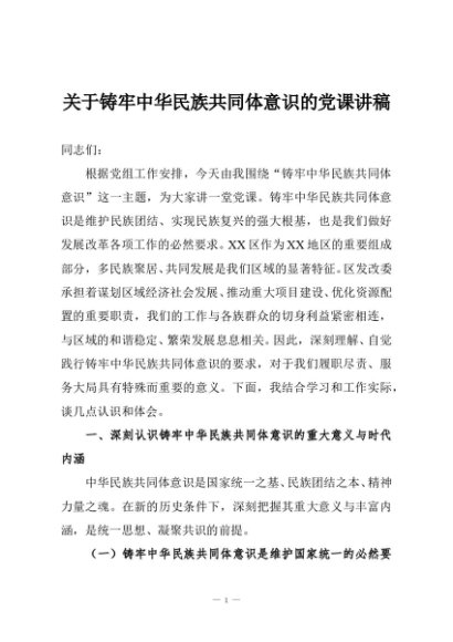/ 【七哥公文】2025年:关于铸牢中华民族共同体意识的党课讲稿+更多免费公文+VX:QiGeGongWen2024