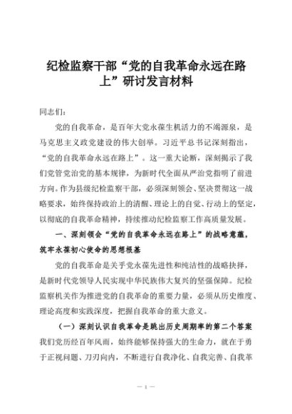 / 【七哥公文】2025年:纪检监察干部“党的自我革命永远在路上”研讨发言材料+更多免费公文+VX:QiGeGongWen2024